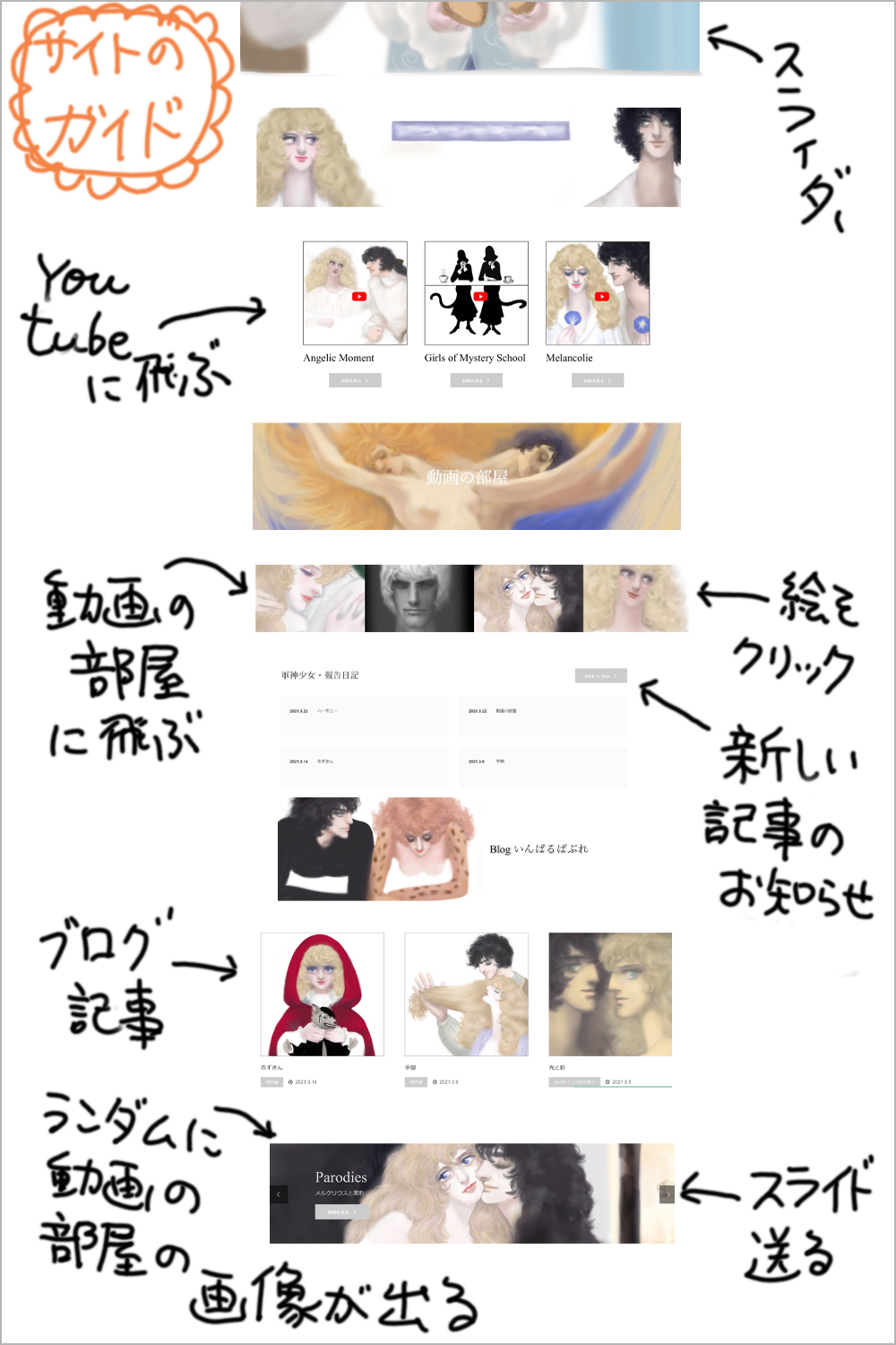 「動画の部屋」を作ったら、最初のページにたくさん画像が並んだので、なんだか判りにくいかも? というわけでガイドを作りました。