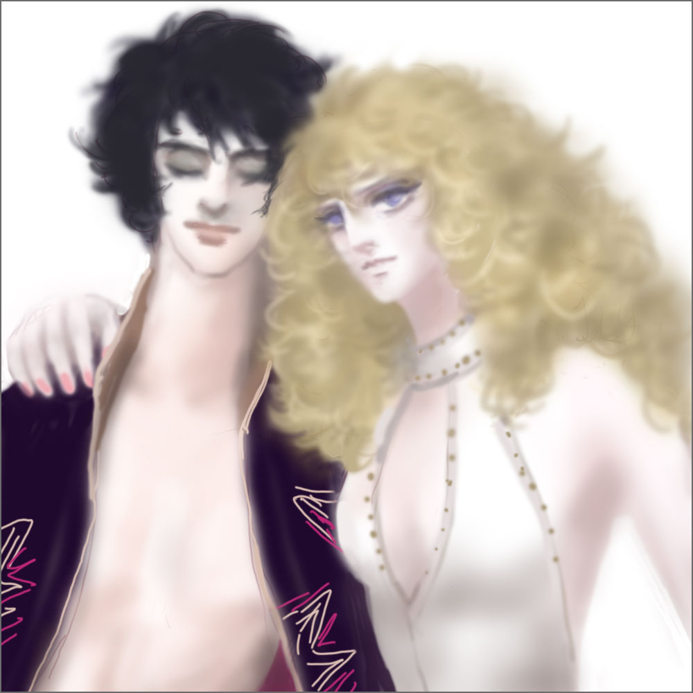 過去からの伝言といえば、ファッションにおけるリバイバル。今の時代風に過去が甦るんだから、装いって生き物みたいに、いつも変化して行く。そこがセンスの見せ所。グラム・ファッションってイマイチよく分らなかったんだけど、それは自分に似合わないからで、似合う人が着れば面白かったんだ。グラマラスなロック・スターをお手本に。というわけで、グラムな装いの恋人たち。リキッドアイラインにホルターネックでキリッ💖 目が主張するときはルージュを控え目に♬