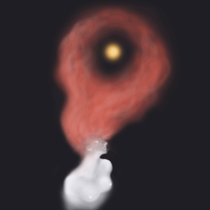 彼女の正体を見てやろう。私は雲のヴェールが晴れるのを待った。こちらの想いを知ってか知らずか、雲は渦巻き、月暈に赤い影。それは女の長い髪、月の周りで燃え上がる長い長い時の流れ。