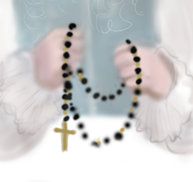 天使祝詞は、聖母が乙女のまま、御子を身ごもった、おめでとう!の言葉が、そのままお祈りになったもの。それを10回唱える。えー10回もぉ?と、初めは思うんだけど、10回唱える内に整ってくるのだ。何が?心が。