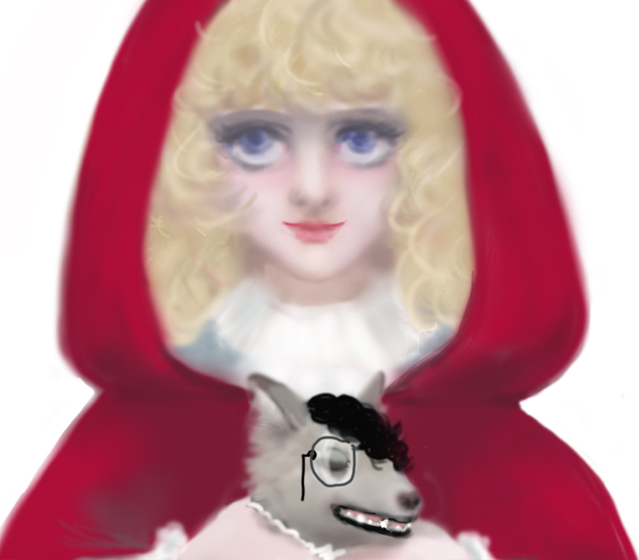 赤ずきんのお話が面白いのは、赤ずきん、オオカミ、おばあさんがつぎつぎ入れ替わるところ。赤ずきんを食べたいオオカミは、おばあさんの家に行って赤ずきんの声をまねて、おばあさんの家の中へまんまと侵入、たちまちおばあさんを食べてしまって、おばあさんに成りすます。そこへ赤ずきんがやってきてベッドに入ると、今度はおばあさんがオオカミに変貌、赤ずきんを食べてしまう。一人の少女をゲットするために若者は、まずターゲットの少女をまねて、バリケードのおばばを突破。そこで今度はおばばに成りすまして少女を安心させておいてからガブリ! 若者は獲物を追って遠くまで出かけなければならず、そこには作戦、突撃、突破、撃破、そして撃沈がある。撃沈? グリムのお話ではそうなんだよね。