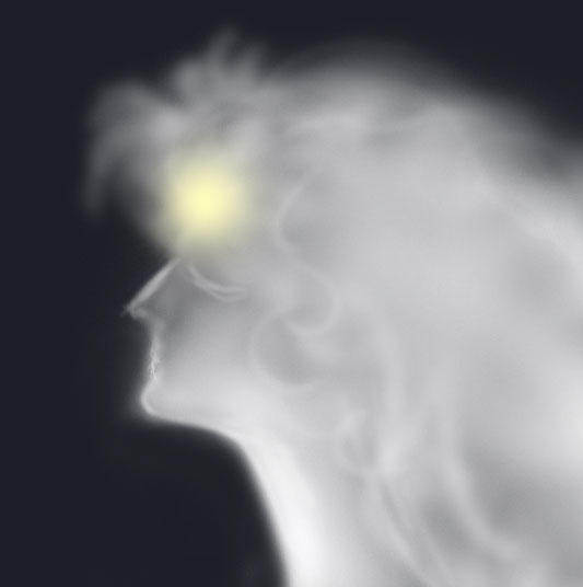 空に現る白い月。ぽっかり浮かぶ丸鏡。何をか映す白金のおもて。今や赤毛は消え去って、見えるは白い純潔の乙女。目を閉じて果てなき思索の憂い顔。