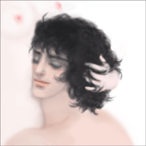 ちょっと真似して、まず女性像を描いてから、重ねるように愛撫する恋人を描きました。描いている間、私の心は女性性と男性性の間を行ったり来たり。魂レベルでは男と女はひとつ、人は本来、男でも女でもあると信じているので、上手く行ったんじゃないかな? だいぶ試行錯誤しましたが。